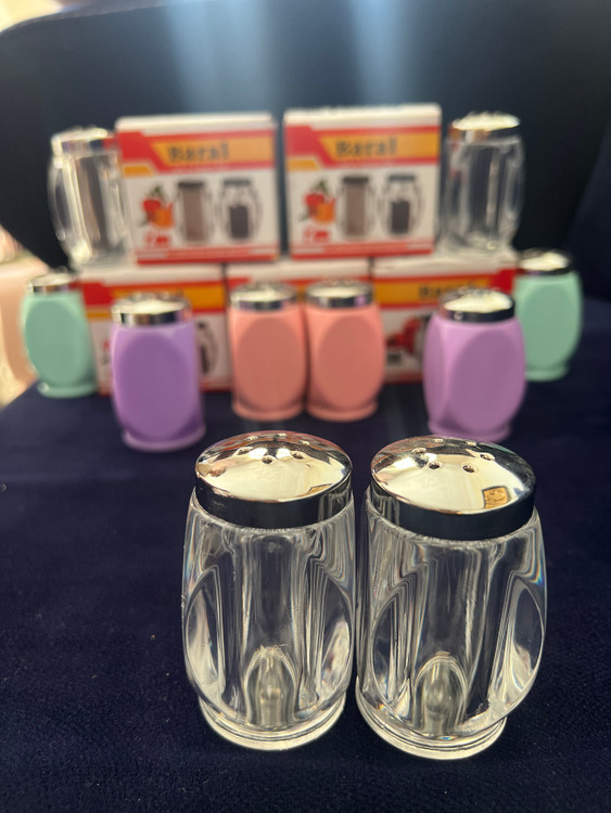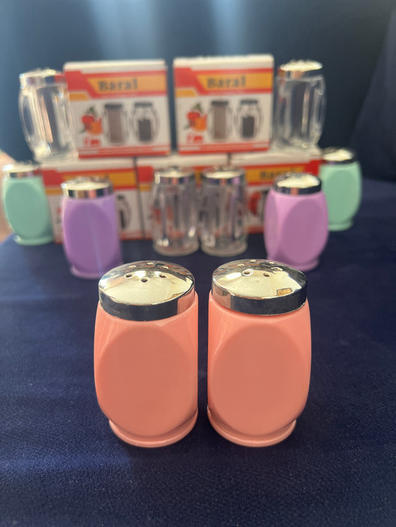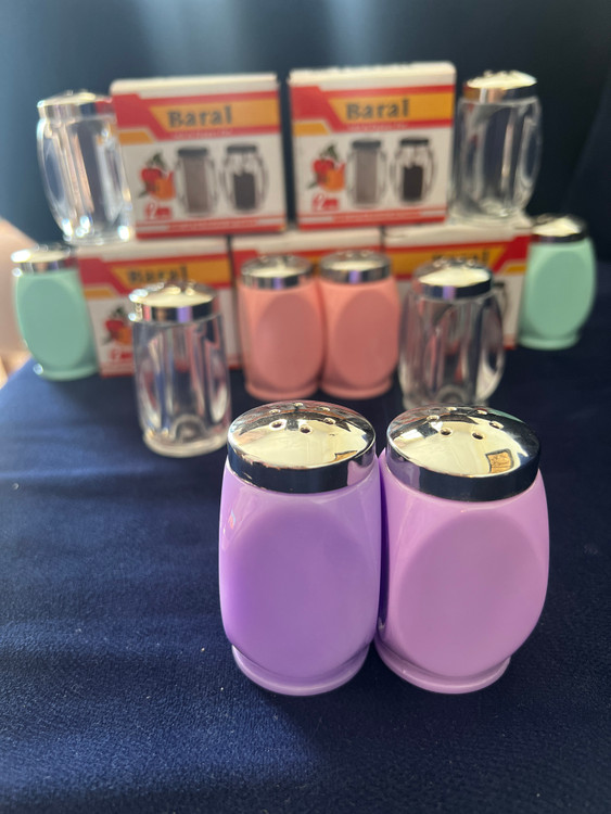 نمکدان و فلفل‌پاش ست ۲ عددی اکرولیک Baral مدل پاستیلی با درب استیل